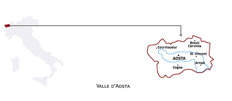 La Valle d’Aosta è divisa in tre parti, Bassa, Media e Alta; la Dora Baltea, che attraversa la regione, suddivide i vigneti alla sinistra orografica, denominata Adret, in cui si concentra la maggior parte della superficie vitata valdostana, e alla destra orografica, chiamata Envers. La denominazione che gode di grandi escursioni termiche e di brezze termiche che, unite alle scarse precipitazioni, ostacolano le malattie fungine. I suoli sono tendenzialmente sabbiosi e limosi, con abbondante scheletro. Data la forte pendenza dei terreni si ricorre molto al terrazzamento con muretti a secco per aumentare la superficie disponibile, cosa che, di fatto, impedisce qualunque tipo di meccanizzazione. È una viticoltura di montagna, parcellizzata, spesso eroica; le ore di lavoro possono arrivare a una media di mille all’anno. Non è un caso che sia nato qui il Cervim (Centro ricerca, studi, salvaguardia, coordinamento e valorizzazione per la viticoltura montana).