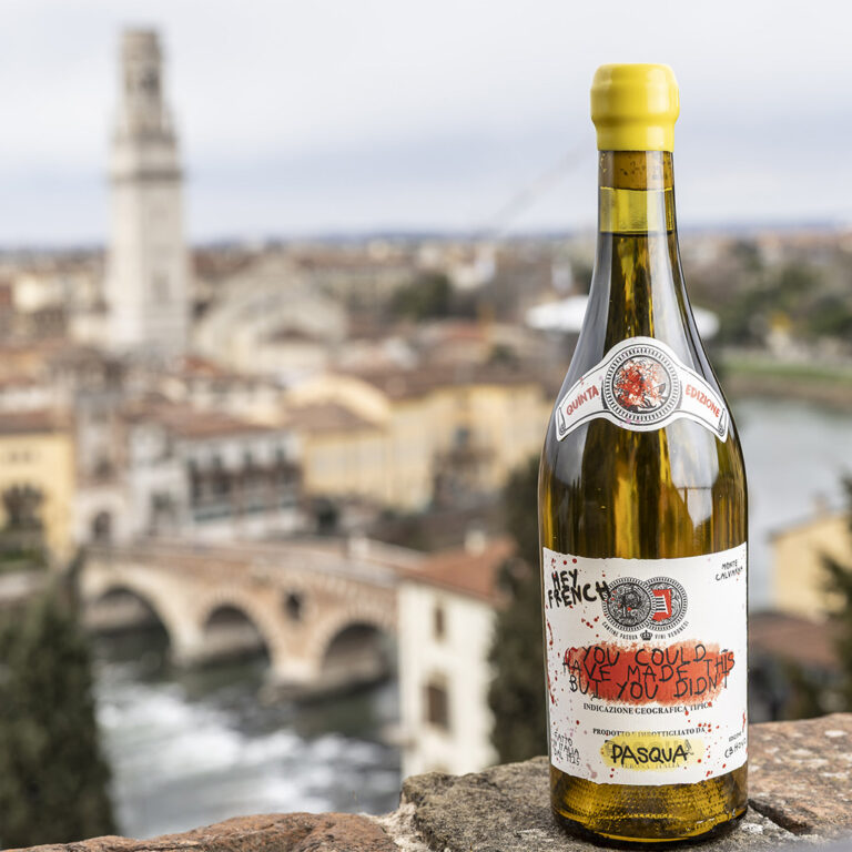 Per il brindisi di rito al termine della conferenza stampa abbiamo assaggiato la quinta edizione dell’iconico bianco multivintage di Pasqua Hey French, you could have made it but you didn’t, al suo debutto assoluto. «Con questa quinta edizione compiamo un passo ulteriore nel nostro percorso di innovazione. Le sei annate che compongono il blend – 2024, 2022, 2020, 2019, 2018 e 2015 – dialogano tra loro, si completano e si rafforzano, dando vita a un’espressione unica e contemporanea. Questo progetto nasce da un’intuizione coraggiosa, ma ha potuto prendere corpo e forma solo grazie al lavoro quotidiano, attento e appassionato dell’uomo. È la dimostrazione concreta di quanto la visione sia fondamentale, ma di come siano la competenza, la sensibilità e la dedizione a trasformarla in creazione».